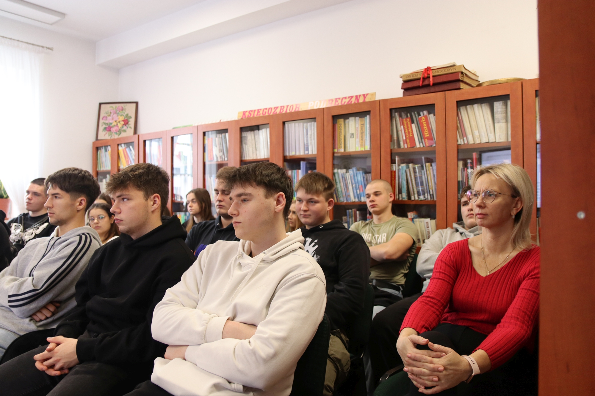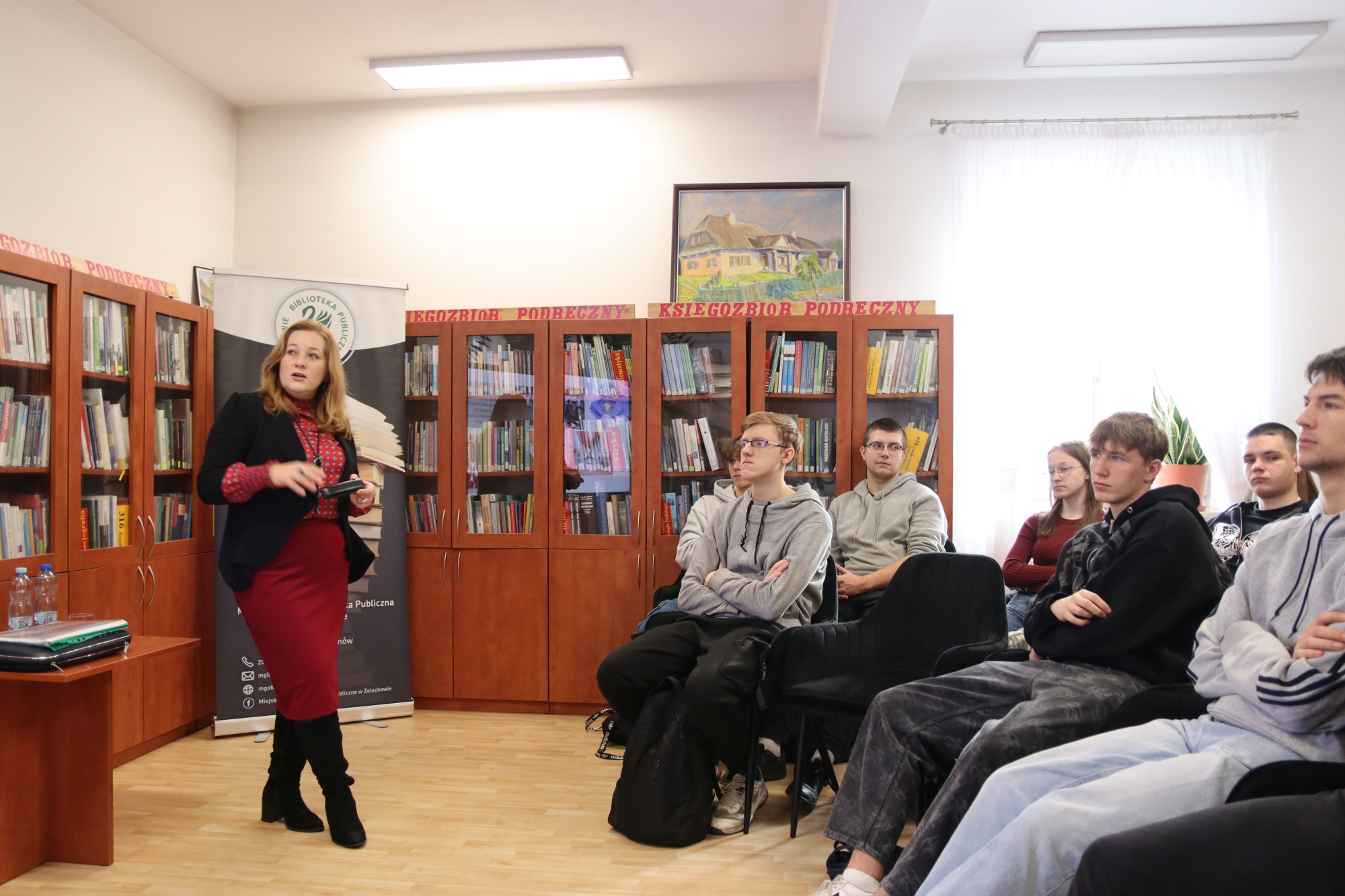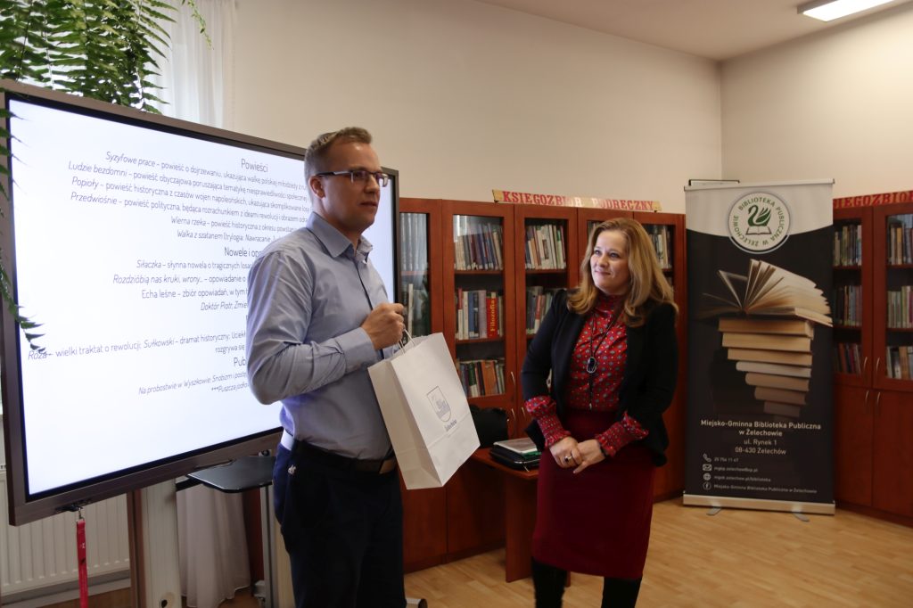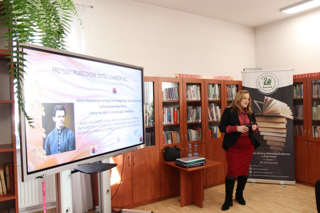W spotkaniu uczestniczyła młodzież ze szkoły ponadpodstawowej, która z dużym zainteresowaniem wsłuchiwała się w opowieści o życiu i twórczości Stefana Żeromskiego. Pani dr Głogowska-Gryziecka niezwykle barwnie przybliżyła młodym odbiorcom zarówno biograficzne ciekawostki dotyczące pisarza, jak i główne motywy oraz przesłania płynące z jego dzieł.